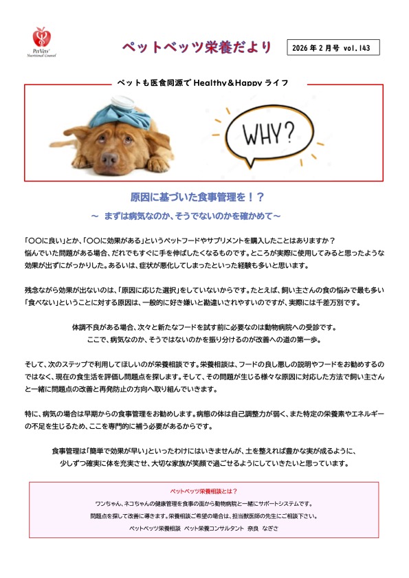 栄養だより 2026年2月2日 原因に基づいた食事管理を!? 0 likes0 comments 12 views Published by tekuteku-master View all posts